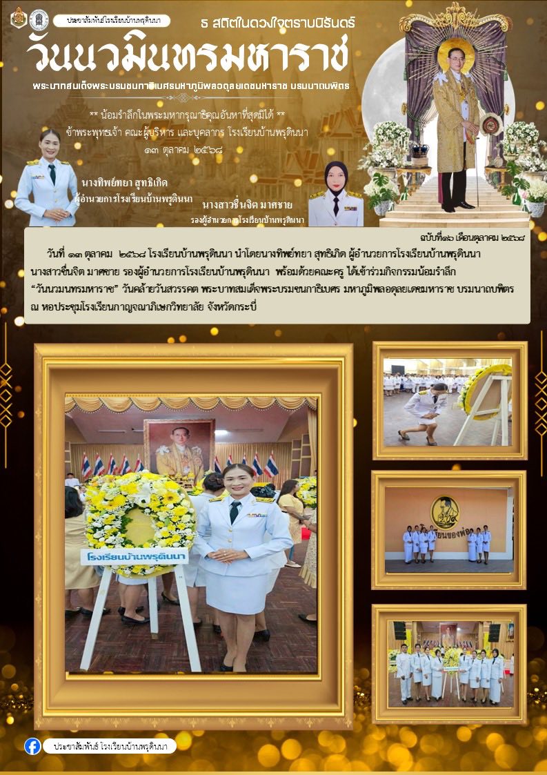 13 ตุลาคม 2568 ✨ ผู้บริหาร ตัวแทนคณะครู โรงเรียนบ้านพรุดินนา ร่วมพิธีวางพวงมาลา เนื่องในวันนวมินทรมหาราช ณ หอประชุมโรงเรียนกาญจนาภิเษกวิทยาลัย กระบี่