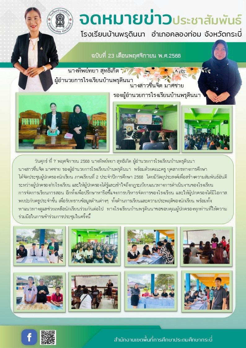 ประชุมผู้ปกครองนักเรียน ภาคเรียนที่ 2 ปีการศึกษา 2568 วันศุกร์ ที่ 7 พฤศจิกายน พ.ศ. 2568