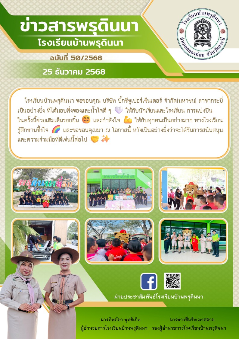 โรงเรียนบ้านพรุดินนา ขอขอบคุณ บริษัท บิ๊กซีซูเปอร์เซ็นเตอร์ จำกัด(มหาชน) สาขากระบี่ เป็นอย่างยิ่ง ที่ได้มอบสิ่งของและน้ำใจดี ๆ ? ให้กับนักเรียนและโรงเรียน การแบ่งปันในครั้งนี้ช่วยเติมเต็มรอยยิ้ม ? และกำลังใจ ? ให้กับทุกคนเป็นอย่างมาก ทางโรงเรียนรู้สึกซาบซ